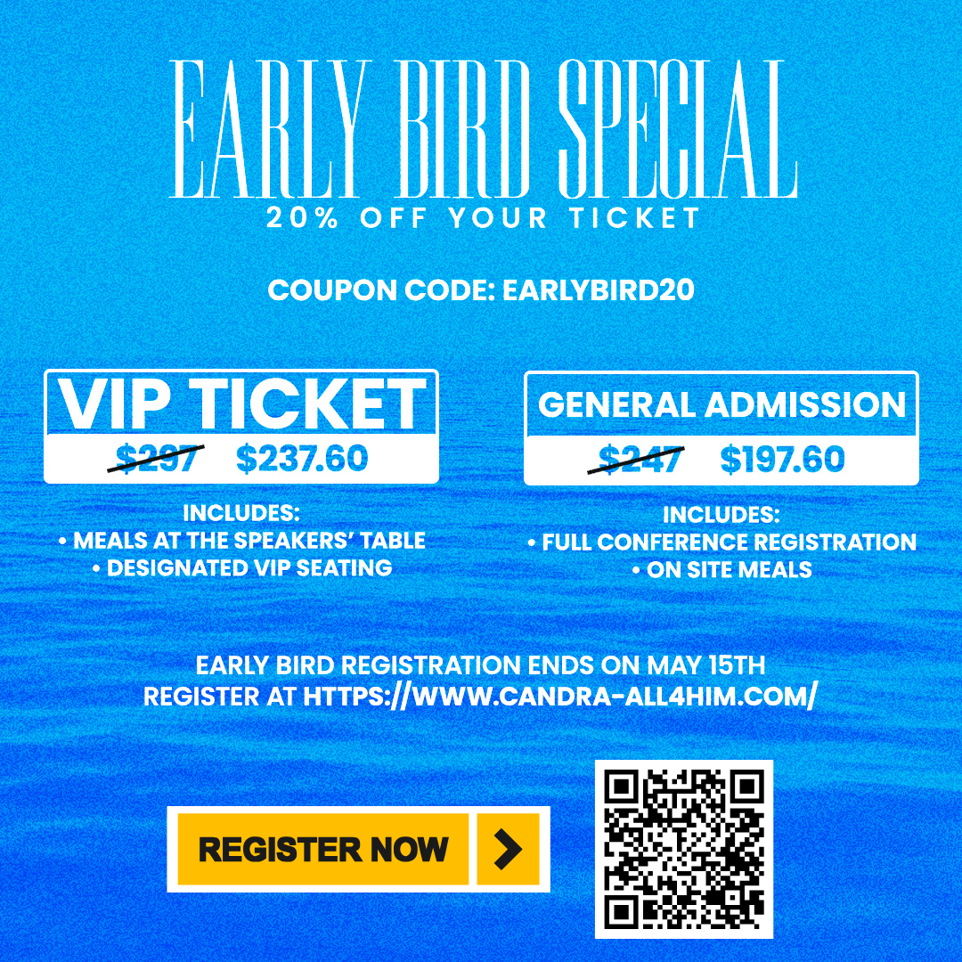 Candra Oakes-Niswanger is the founder of All4Him Gathering Ministry and the global platform Candra All4Him. With over 35 years of experience as a prophetic worship leader, songwriter, speaker, author, and entrepreneur, Candra carries a unique calling to uncover “gold nuggets” of God-given potential in people and organizations. She is passionate about ushering others into God’s presence, equipping them to walk in their Kingdom identity, and empowering them to impact the world with faith, hope, and transformation.